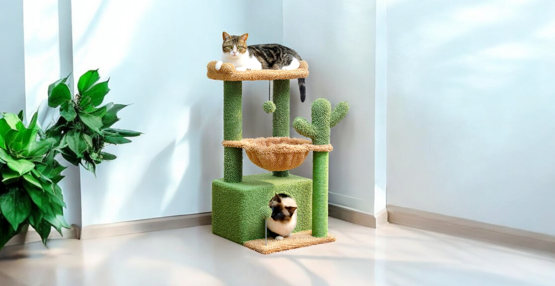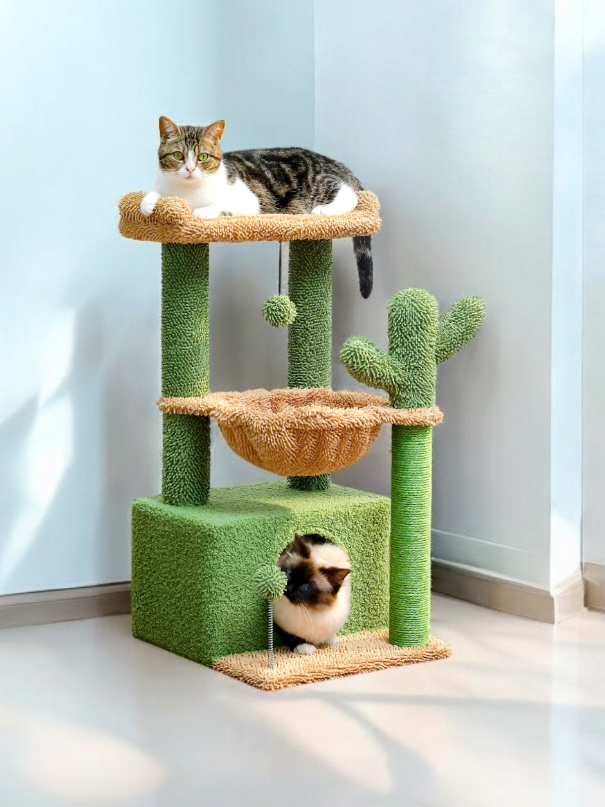 Does your cat love to scratch anything in sight? This cactus cat tree features sisal-covered scratching posts that satisfy their natural instincts while keeping your furniture safe from claw marks. The interactive ball toys add an extra layer of fun, giving your cat hours of entertainment and exercise.