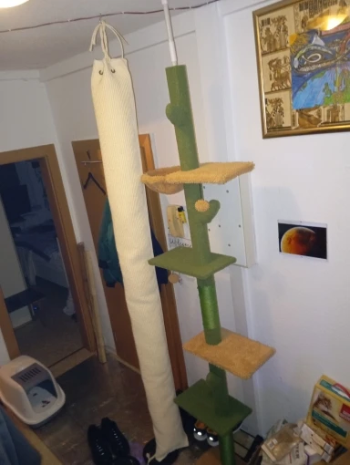 The Cat Tree 5-Tier Floor to Ceiling with Scratching Post is the ultimate playground for your adventurous felines. Designed with 5 plush-covered platforms and adjustable height (94-108 inches), this modern cat tower offers endless climbing, lounging, and scratching opportunities. The natural sisal-covered poles and cactus-inspired design add both function and style to your home, while the sturdy tension rod ensures stability. With space for multiple cats and features like a hammock, acrylic nest, and dangling toys, this cat tree caters to their natural instincts while keeping them entertained and comfortable.